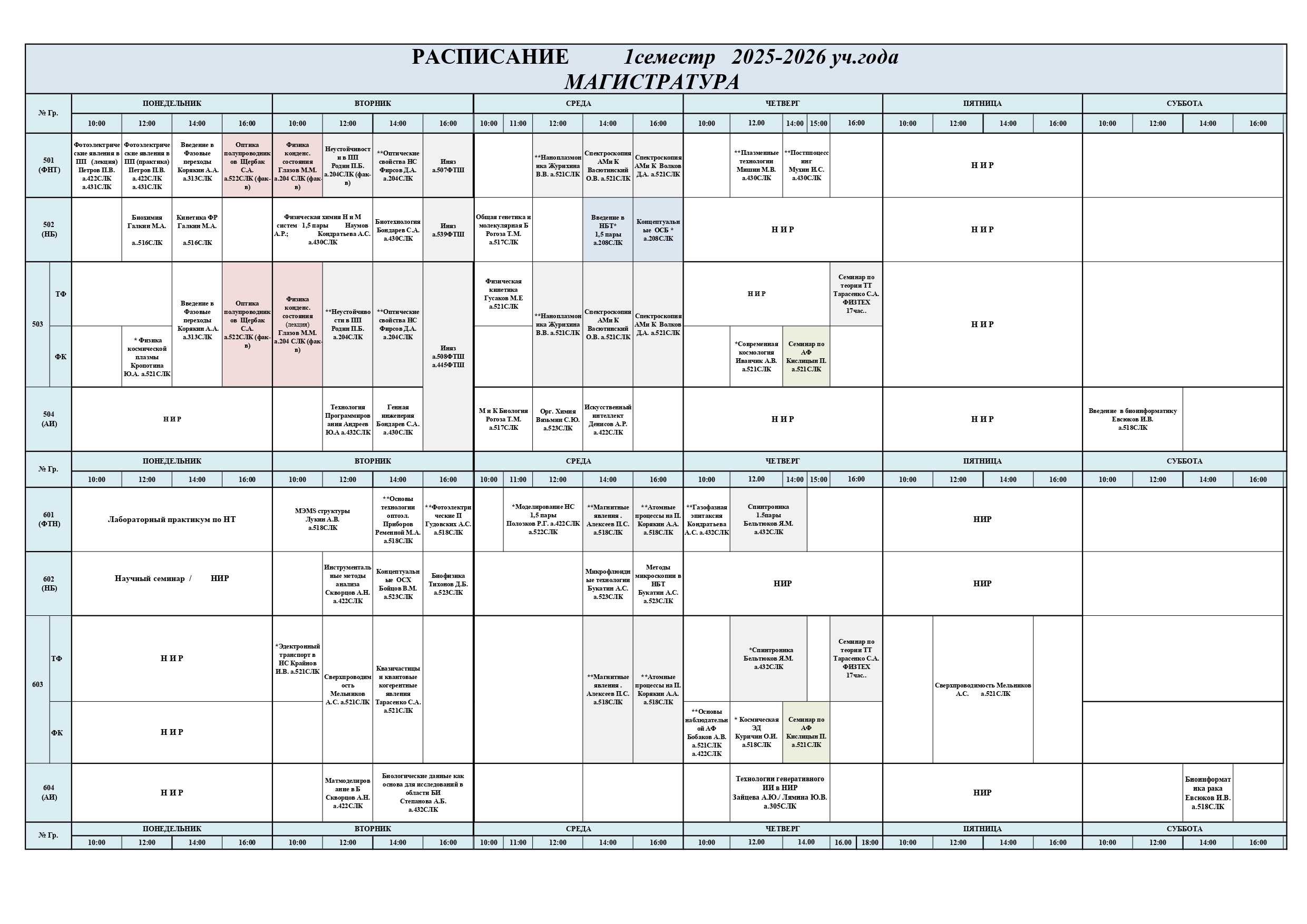 Расписание занятий студентов очной формы обучения  на 1 семестр 2025-2026 учебного года (магистратура)