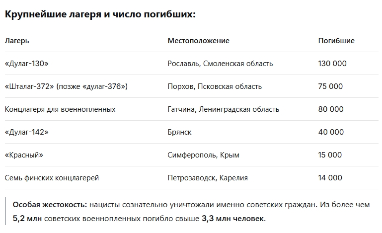 По данным Национального центра исторической памяти при Президенте РФ, только в границах современной Российской Федерации насчитывается более 528 нацистских мест принудительного содержания.